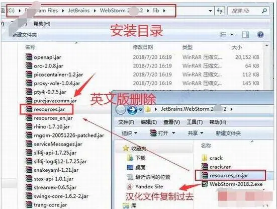 2、将汉化包里的resources_cn.jar文件复制到Webstorm 2019安装目录下的。Webstormlib目录。