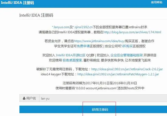 如何获取激活码?打开网址(IntelliJ IDEA 注册码),我们能看到下面的界面,直接点击获取激活码,将生成的激活码粘贴到WebStorm激活对话框中的【Lisence Code】输入框,点击OK即可破解。