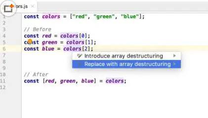 通过解构,您可以使用非常简洁的语法将数组和对象中的值解压缩到变量中。WebStorm的新重构和意图(Alt-Enter)可以帮助您轻松地将解构引入 JavaScript或TypeScript代码。