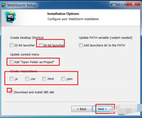 3、然后这里是选择一些自定义的操作设置,第一个是版本,关联文件和是否安装一个插件