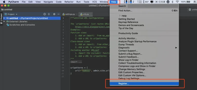 点击IDE菜单 "Help" -> "Register” 或者Configure -> Manage License...