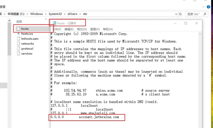在最后添加一行 “0.0.0.0 account.jetbrains.com”的内容。然后保存, 注意, 不要保存成原来格式, 不要保存成txt文件格式。