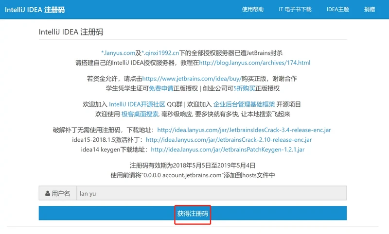 2.1、访问lanyus注册机地址:http://idea.lanyus.com/