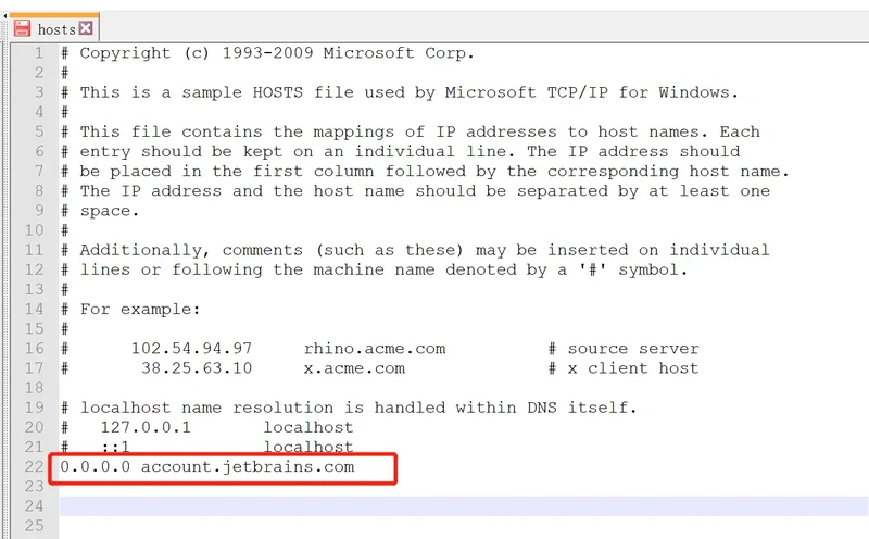 1.3、在hosts文件末尾追加记录:0.0.0.0 account.jetbrains.com