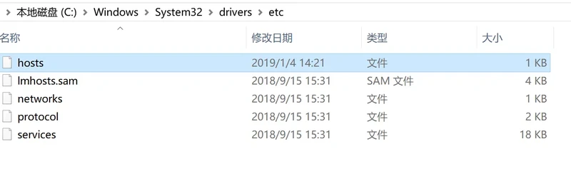 1.1、hosts文件路径路径:C:WindowsSystem32driversetc