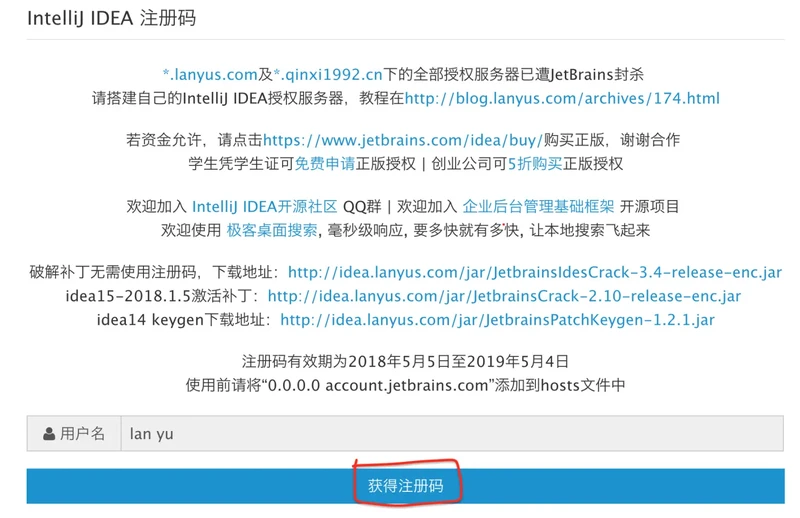 准备所需破解补丁,最新版本下载地址:IntelliJ IDEA 注册码 (如图所示下载)