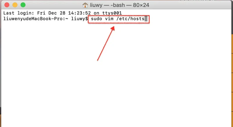 打开终端输入:sudo vim /etc/hosts , 然后输入本机开机密码。