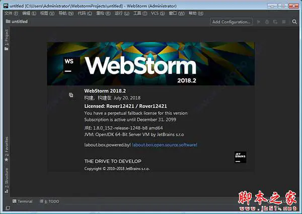 10、至此,webstorm 2018.2破解版成功激活,用户可以无限制免费使用。
