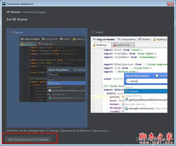 8、这一步点击“skip remaining and set defaults”跳过设置默认;