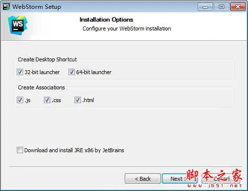 3、勾选创建webstorm 2018.2桌面快捷方式,包括32位和64位,以及自行选择关联文件格式,建议全选;
